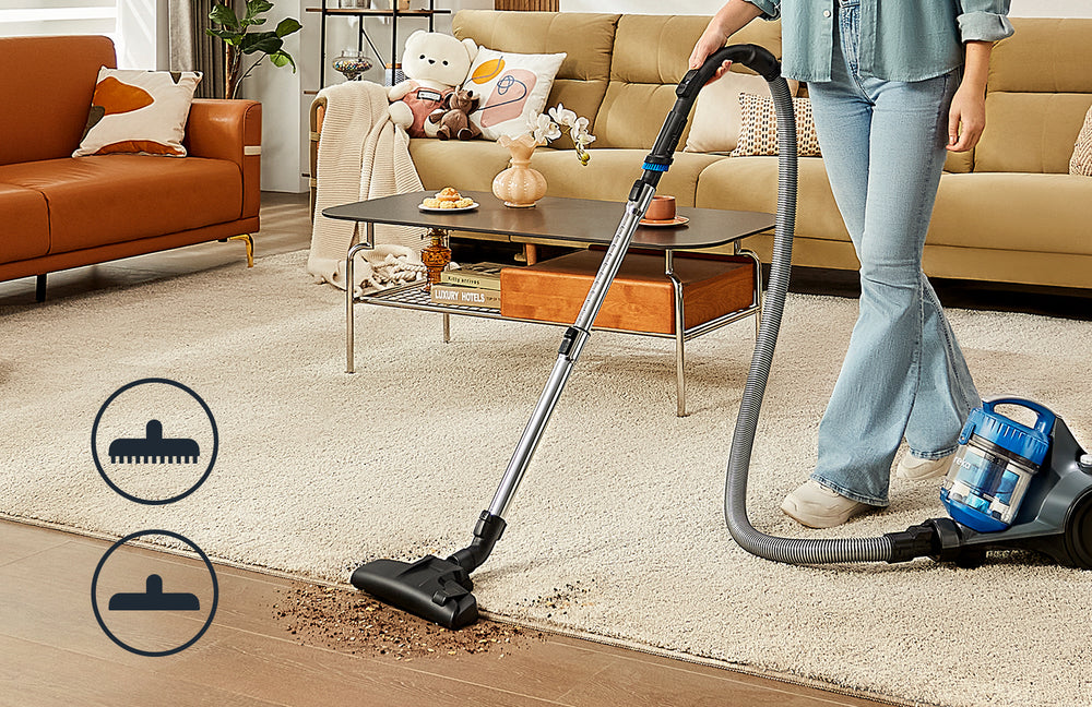 - Accesorios Versátiles: Incluye herramientas para limpiar escaleras, tapetes, alfombras, muebles, cortinas y hasta interiores de automóviles.